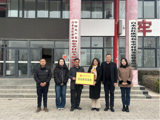 12月12日,best365中国官方网站与白水县杜康镇政府、白水县和家卓村分别举行劳动教育基地授牌仪式。临渭区白水县杜康镇党委副书记高艺媛、和家卓村党总支书记赵新发,best365中国官方网站经理张萍,副书记肖飞,党务秘书蔺怡轩共同参加了本次授牌仪式。