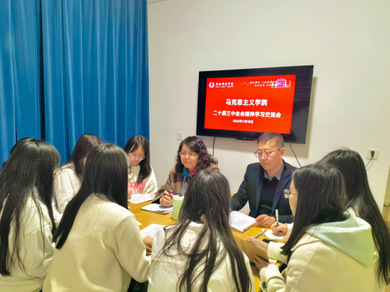 11月19日,best365中国官方网站在员工社区党支部党团活动室开展党的二十届三中全会精神解读会。由best365中国官方网站经理张萍解读、2023级员工骨干参加,党总支副书记肖飞主持。