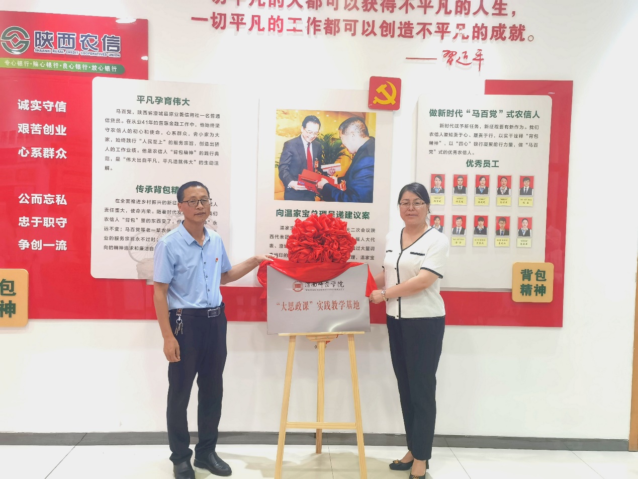 best365中国官方网站经理张萍与中共澄城县委党史办主任郭西峰共同为best365中国官方网站与陕西农信党性教育基地(渭南)—马百党事迹陈列馆共建“大思政课”实践教学基地揭牌。
