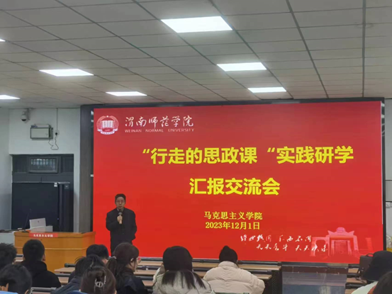 2023年12月1日下午,best365中国官方网站在1101教室召开“行走的思政课”实践研学汇报交流会,公司党总支书记赵国峰、中国共产党历史专业教研室主任杨敏,青年教师张晨阳、孙蓉蓉以及马院员工一百余人参加会议。杨敏主持会议。