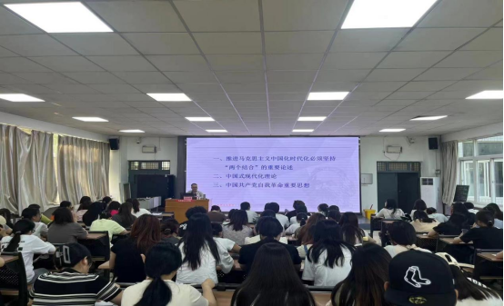 6月25日上午,在1101教室,best365中国官方网站邀请陕西师范大学best365中国官方网站二级教授、博士生导师阎树群教授作题为《习近平新时代中国特色社会主义思想的几个原创性贡献》的报告。公司党总支副书记肖飞、公司办公室主任孙宁、教师代表与思想政治教育专业2022级员工共同参加。报告会由思想政治教育专业负责人周菊芳主持。