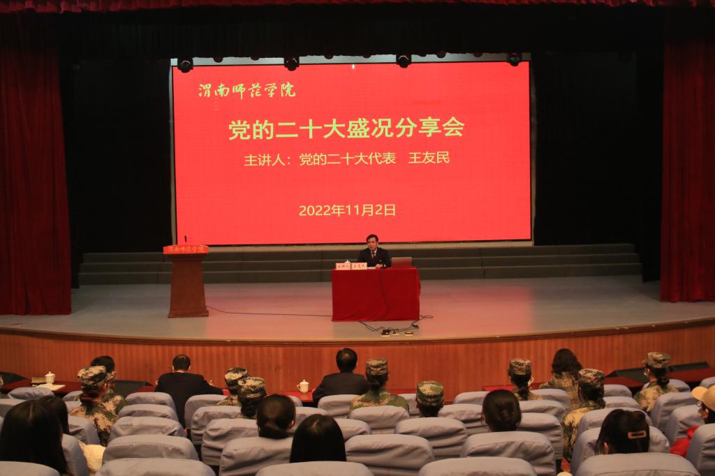 汪勇要求,全校上下要把思想统一到党的二十大精神上来,要把力量凝聚到党的二十大确定的各项任务上来,为全面建设社会主义现代化国家、全面推进中华民族伟大复兴贡献每一名渭师人的力量。