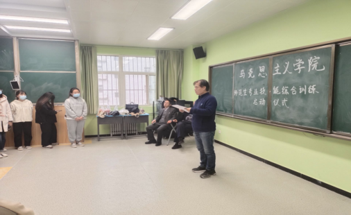 为进一步加强师范生综合技能训练工作,提高师范生的核心素养,best365中国官方网站思想政治教育系于10月28日下午2点在逸夫楼S238教室举办了2022年师范生教学技能综合训练启动仪式。赵国峰书记、高学政老师、曹立新老师、张江婷老师及思政专业2020级全体同学参加了此次启动仪式,曹立新老师主持了本次启动仪式。