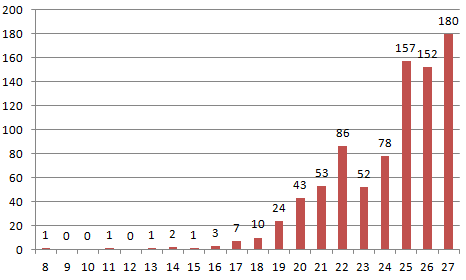 12月7日以来陕西病例增加趋势(截止27日:851人)