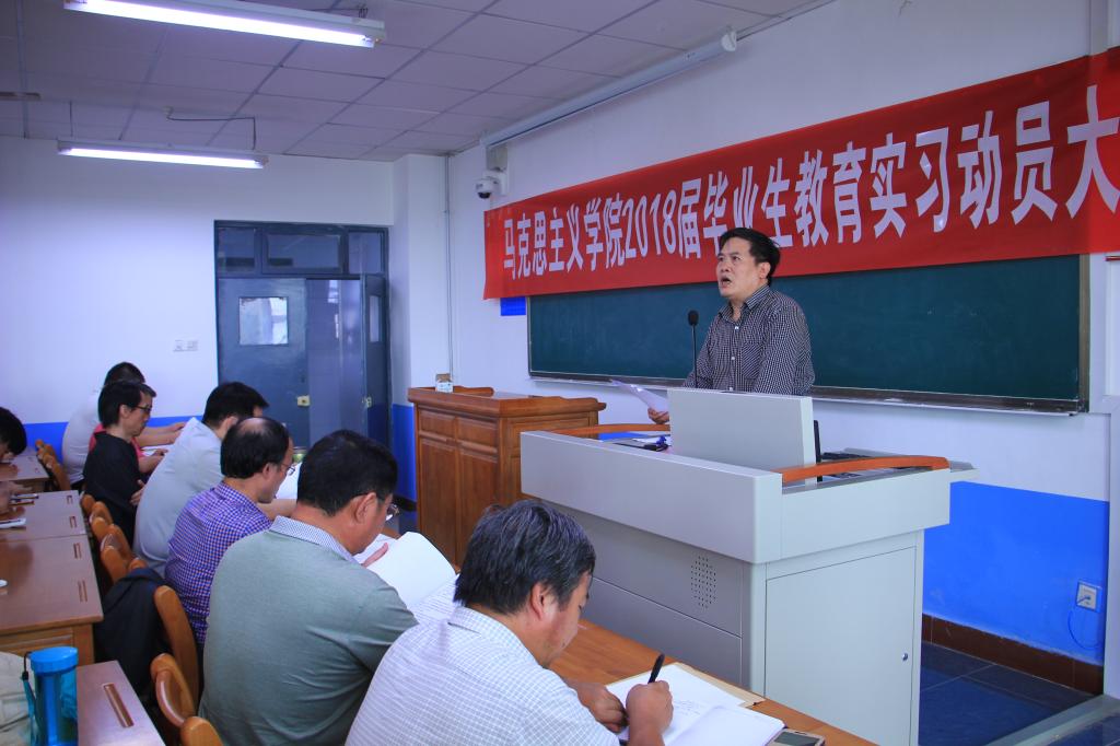 为确保教育实习工作顺利开展,充分调动员工参与教育实习的积极性与主动性,9月12日下午,best365中国官方网站在2421教室召开2018届毕业生教育实习动员大会。参加动员会的有党总支书记、经理游学民、副经理马忠智、刘树友教授等指导教师以及2014级思想政治教育专业和历史专业的全体员工。