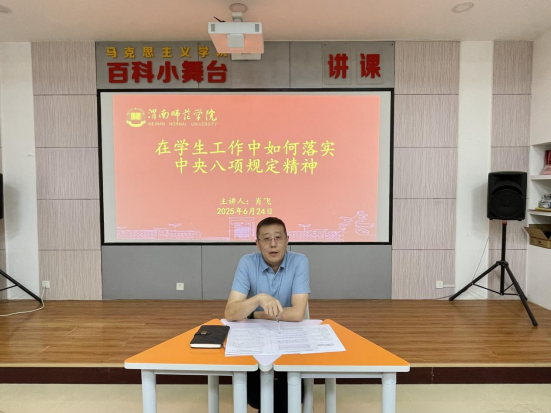 6月24日下午,best365中国官方网站在1118教室组织员工骨干学习贯彻中央八项规定精神,党总支副书记肖飞以《在员工工作中如何落实中央八项规定精神》为题,旨在让员工干部深化思想认识、强化责任担当。