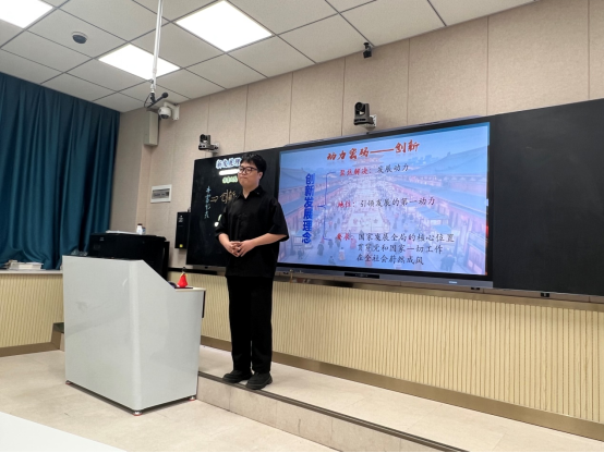 思想政治教育专业22级员工杨子涵同学展示了五分钟说课和十分钟模拟授课。赵亚妮从说课、讲课两个方面,就教材分析、教学目标、教学方法、板书设计等环节进行了细致的点评,就教学内容的“承上启下”、教学方法的议题式教学 “一例到底”、教学课件PPT的设计等方面提出了许多建设性的意见和建议。